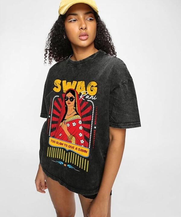 Women’s 100% Cotton Graphic Print Oversized Fit Round Neck T-Shirt